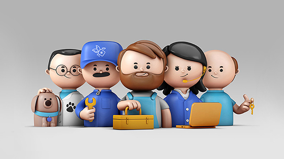 Serie de personajes para explicar beneficios del producto.